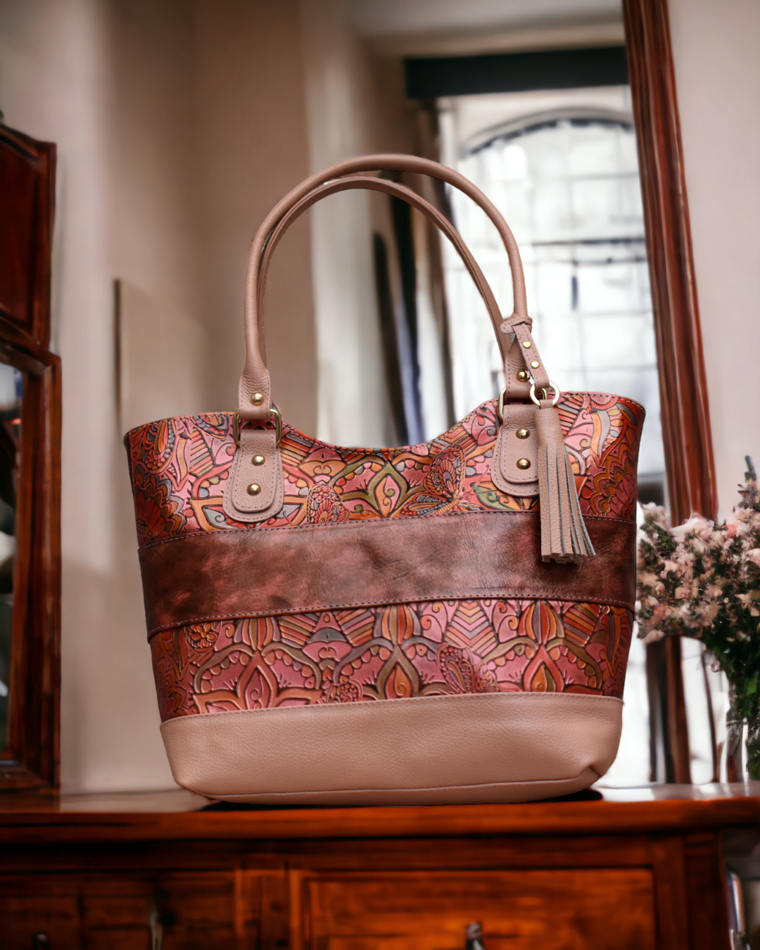 Descubre la elegancia del Bolso color Nude, una pieza única de nuestra nueva colección. Fabricado en cuero de alta calidad y pintado artesanalmente, este bolso combina detalles sofisticados y tonos suaves para resaltar tu estilo en cualquier ocasión.